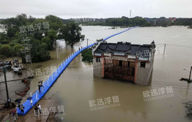 聚焦江西抗洪:鄱陽蓮湖鄉(xiāng)龍口村搭建浮橋通行
